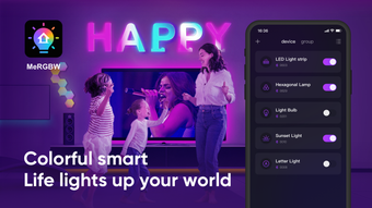 De MeRGBW-app biedt gebruikers de mogelijkheid om hun MeRGBW slimme Bluetooth-verlichting eenvoudig te beheren. Deze gratis app stelt gebruikers in staat om hun lampen te organiseren per kamer of gebied, waardoor een gebruiksvriendelijke ervaring ontstaat. Met functies zoals het aanpassen van helderheid, temperatuur en kleur van meerdere lampen, kunnen gebruikers hun verlichting op elk moment en vanaf elke locatie bedienen. Bovendien zijn er zorgvuldig ontworpen verlichtingsscènes beschikbaar die de sfeer van een ruimte onmiddellijk kunnen transformeren, met een bibliotheek aan verschillende scènes om uit te kiezen.
